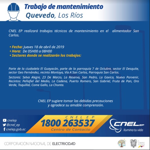 Gracias a su comprensión, CNEL EP continúa trabajando para brindar un servicio de calidad.