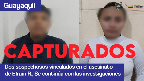 #ATENCIÓN | #Guayas: en operativos ejecutados esta madrugada, entre #FiscalíaEc y @PoliciaEcuador, 2 personas fueron detenidas por su presunta participación en varios hechos delictivos suscitados en #Guayaquil, entre estos, la muerte de Efraín R. R. #FiscalíaContraElDelito pic.twitter.com/o2VC8GrLJo