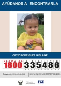 La menor de 2 años se encontraba en el interior de su vivienda ubicada, de acuerdo con la Policía Nacional, en el sector Topadero, del cantón El Empalme, provincia del Guayas, cuando misteriosamente desapareció.