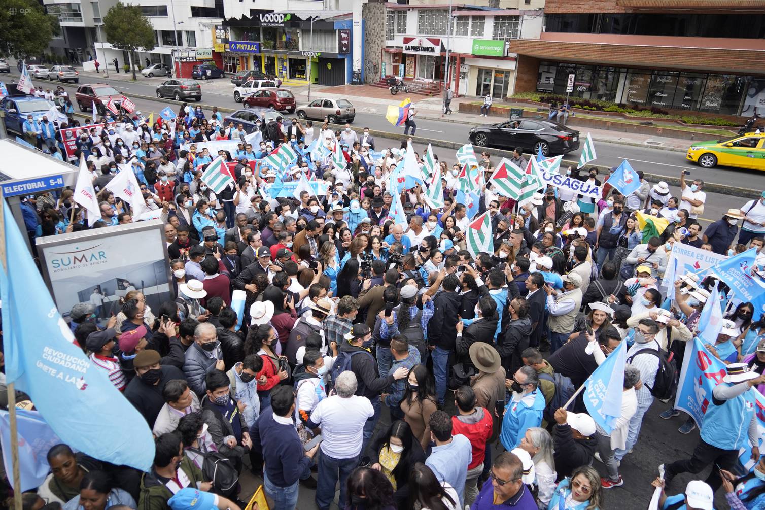 Este 11 de mayo, los dirigentes del movimiento, encabezados, entre otros, por Marcela Aguiñaga y Paola Pabón, se concentraron en la plaza Argentina, en el norte de Quito, para ir en una breve caminata hasta el CNE para entregar decenas de cajas con las firmas recolectadas en los últimos meses.