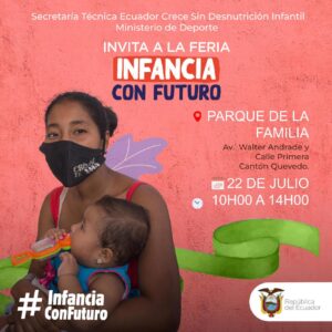 El Gobierno Nacional trabaja en acciones para hacer frente a uno de los problemas sociales más graves que tiene el Ecuador, la Desnutrición Crónica Infantil y las Ferias Infancia con Futuro forman parte de las actividades ideadas para brindar servicios y educar a la población sobre las causas y consecuencias de la problemática, así como la manera de prevenirla, para mejorar las condiciones de vida del grupo poblacional (madres embarazadas, niñas y niños menores de 2 años), a través de acciones concretas y articuladas con varias instituciones gubernamentales.