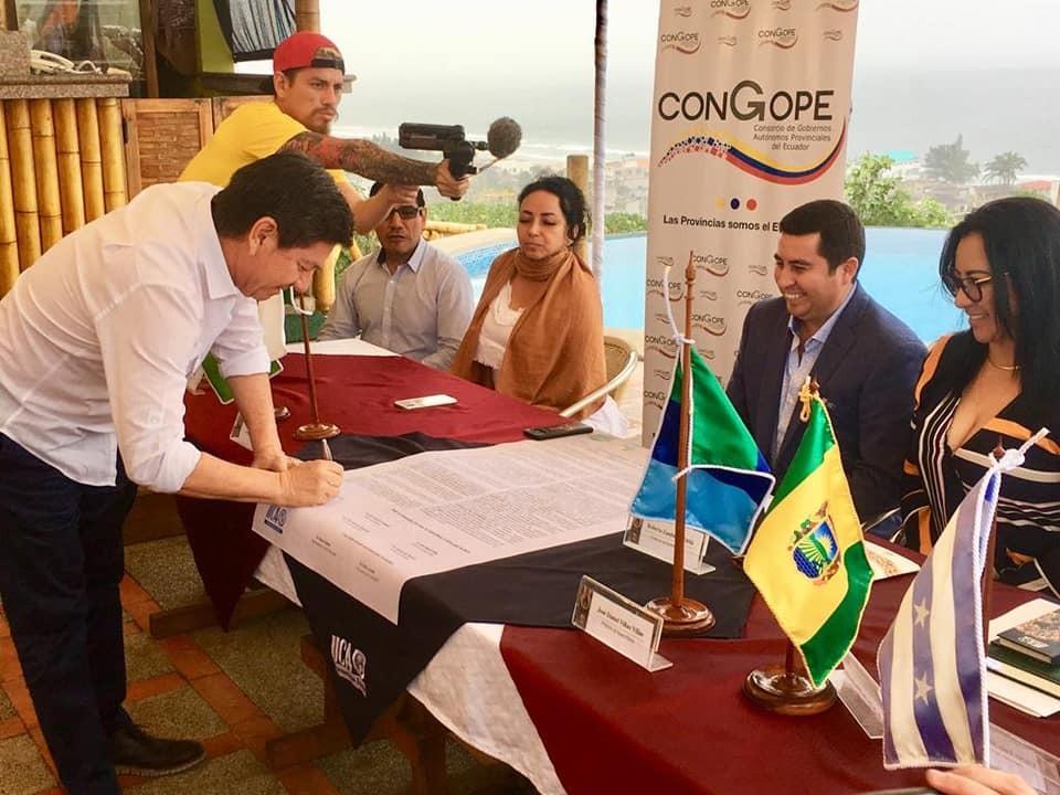 En ese contexto, Terán participó recientemente de la firma del pacto territorial por el cambio climático y la agricultura en la costa ecuatoriana en la provincia de Santa Elena, esto con el propósito de evaluar el riesgo atmosférico existente y asegurando la sostenibilidad de la gestión ambiental.