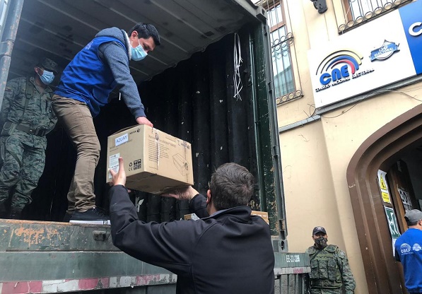 Además, con la finalidad de mantener todas las seguridades los equipos están siendo enviados con una cadena de custodia por resguardo militar hacia las 24 provincias del país y para el 18 de enero se prevé serán enviados hacia las embajadas en el exterior, excepto a las zonas electorales ubicadas en Ottawa, Buenos Aires y Phoenix, las cuales utilizarán el voto telemático, voto por correspondencia y voto electrónico.