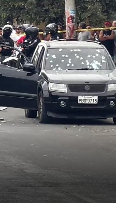El vehículo Suzuki en el que se encontraban quedó gravemente dañado, con su parabrisas perforado por numerosos disparos, lo que le dio un aspecto similar a un colador.