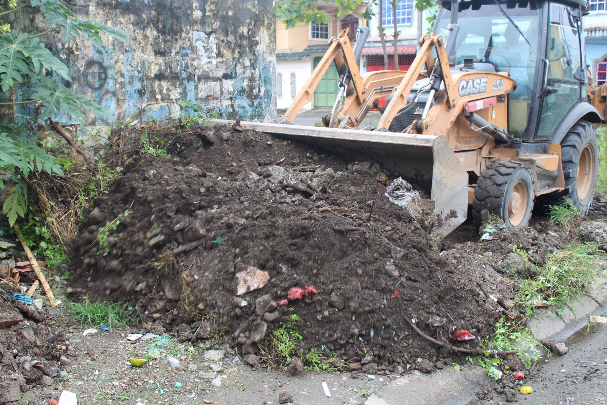 José Carpio, jefe del equipo caminero, lamentó que los solares vacíos sirvan para depositar toda clase de desperdicio, el mismo que es evacuado en maquinarias del equipo caminero.