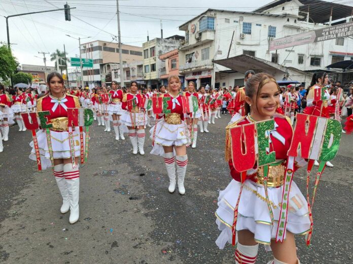 La celebración se enriqueció con la participación de Bandas Musicales invitadas, como la George Bodero de Cantón Mocache y la Bella Aurora, que aportaron ritmos foráneos que hicieron alegrar la calle 7 de Octubre.