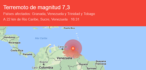 Un movimiento de magnitud 7,3° richter (preliminar) sacudió la costa norte de Venezuela este martes, según el Servicio Geológico de Estados Unidos.