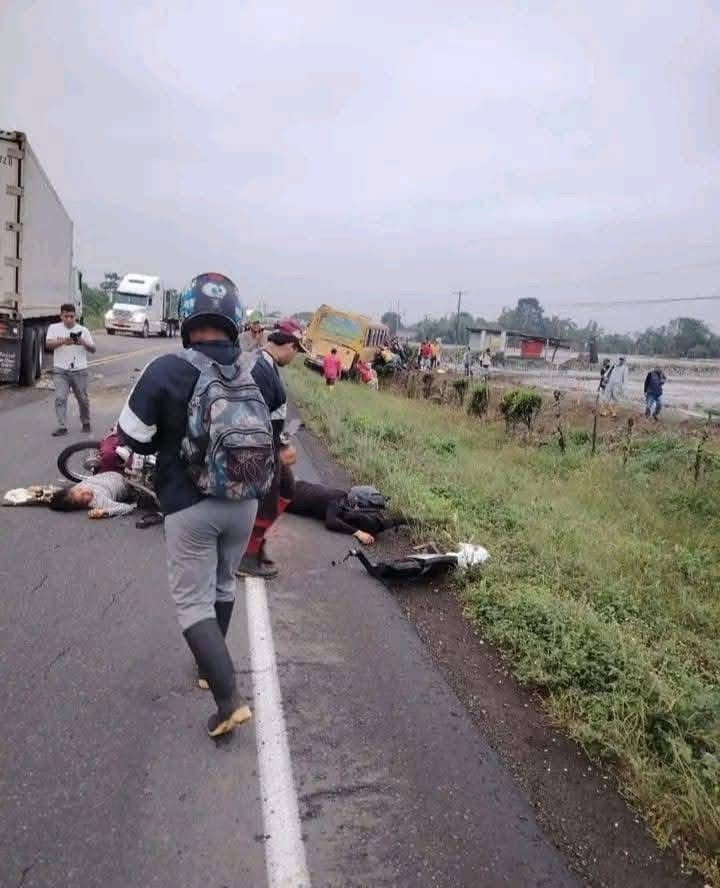 El siniestro involucró a una motocicleta blanca, en la que se movilizaban dos personas, un bus institucional Mercedes Benz amarillo y un tráiler blanco. Según información preliminar, el tráiler impactó por detrás, provocando que la motocicleta colisionara también con el bus.