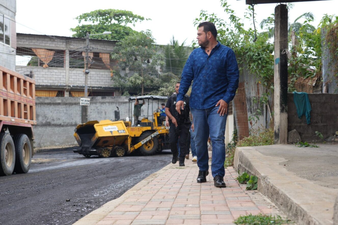El alcalde de Vinces, Alfonso Montalván Cerezo, recorrió las obras de asfaltado que se ejecutan en la calle Vicente Carbo, en la ciudadela La Virgen, específicamente en el tramo comprendido entre Córdova y 14 de Junio.